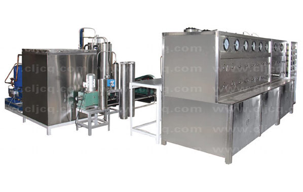 該裝置采用CO2作添加劑,主要應(yīng)用:醫(yī)藥、食品、香精、香料等有效成份的提取,精細(xì)分離。裝置由萃取釜、分離釜、精餾柱、CO2泵等組成:萃取釜為0.5-50L/32-50Mpa固液兩用,CO2循環(huán)使用。接觸流體的容器、閥門(mén)、管路采用1Cr18Ni9Ti不銹鋼制作。